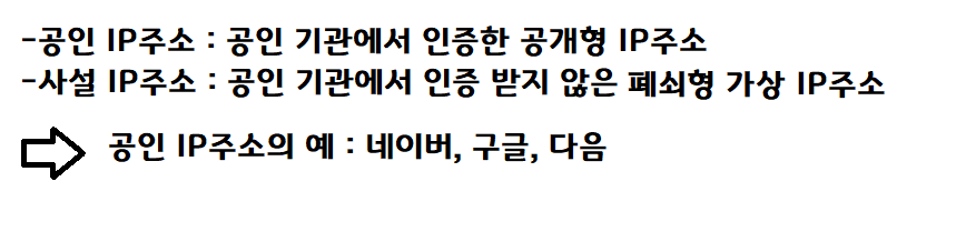 저희는 택배를 받기 위해서 반드시 주소가 필요합니다. 그리고 그 주소는 도로명(서울시 종로구 종로1길)와 같이 나라에서 인정 하여 누구나 알수있는 주소가 공인 IP주소 입니다. 우리가 구글에 접속할려면 구글 서버 컴퓨터의 공인 IP주소를 알아야 겠죠?