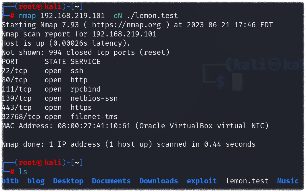 6. -oN : 뒤에 특정한 파일 명을 적으면 그 파일에 출력된것이 저장됩니다.