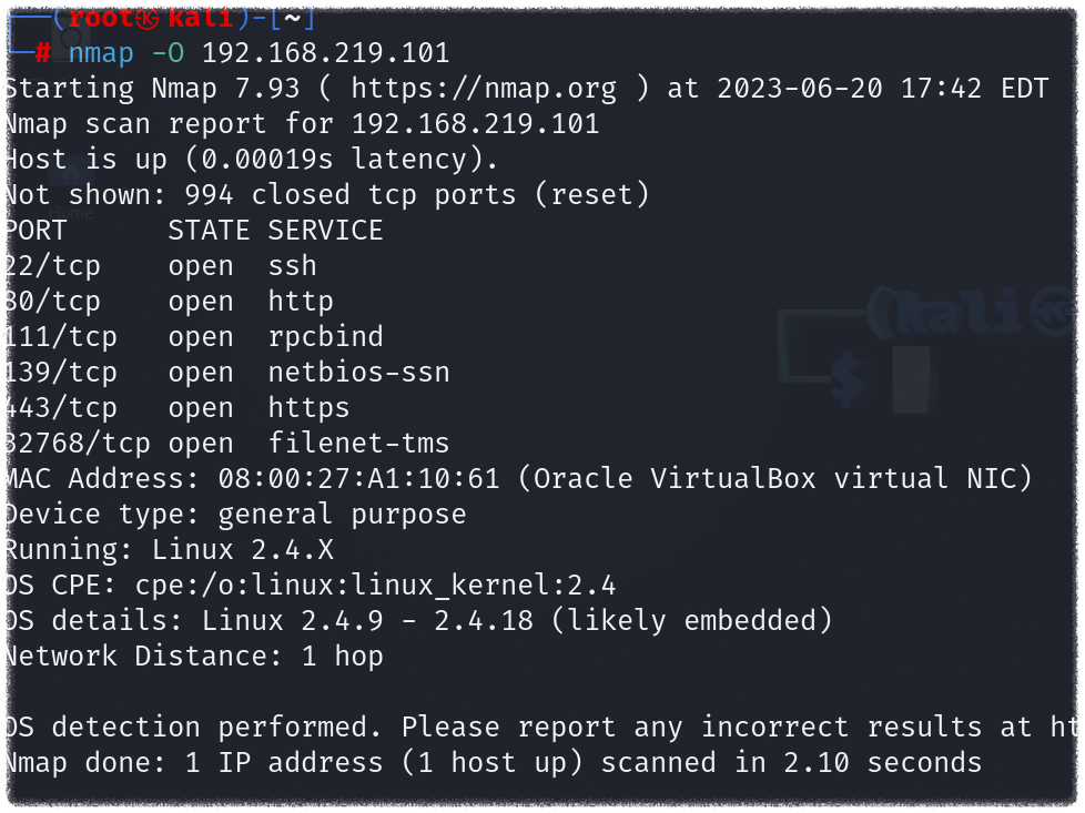 2. -O : 포트스캔을 할때 운영체제를 같이 표시해주는 명령어 입니다.