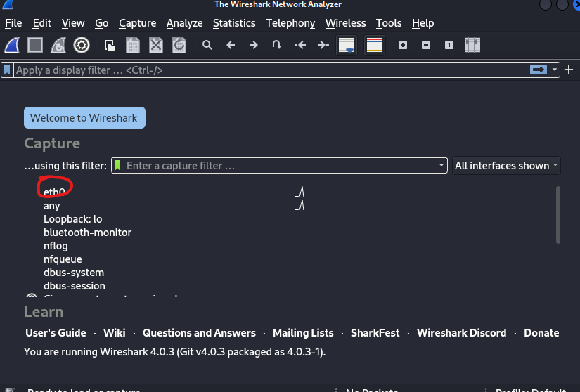 4. wireshark페이지에 검색창에 arp를 입력하고 엔터를 눌릅니다.