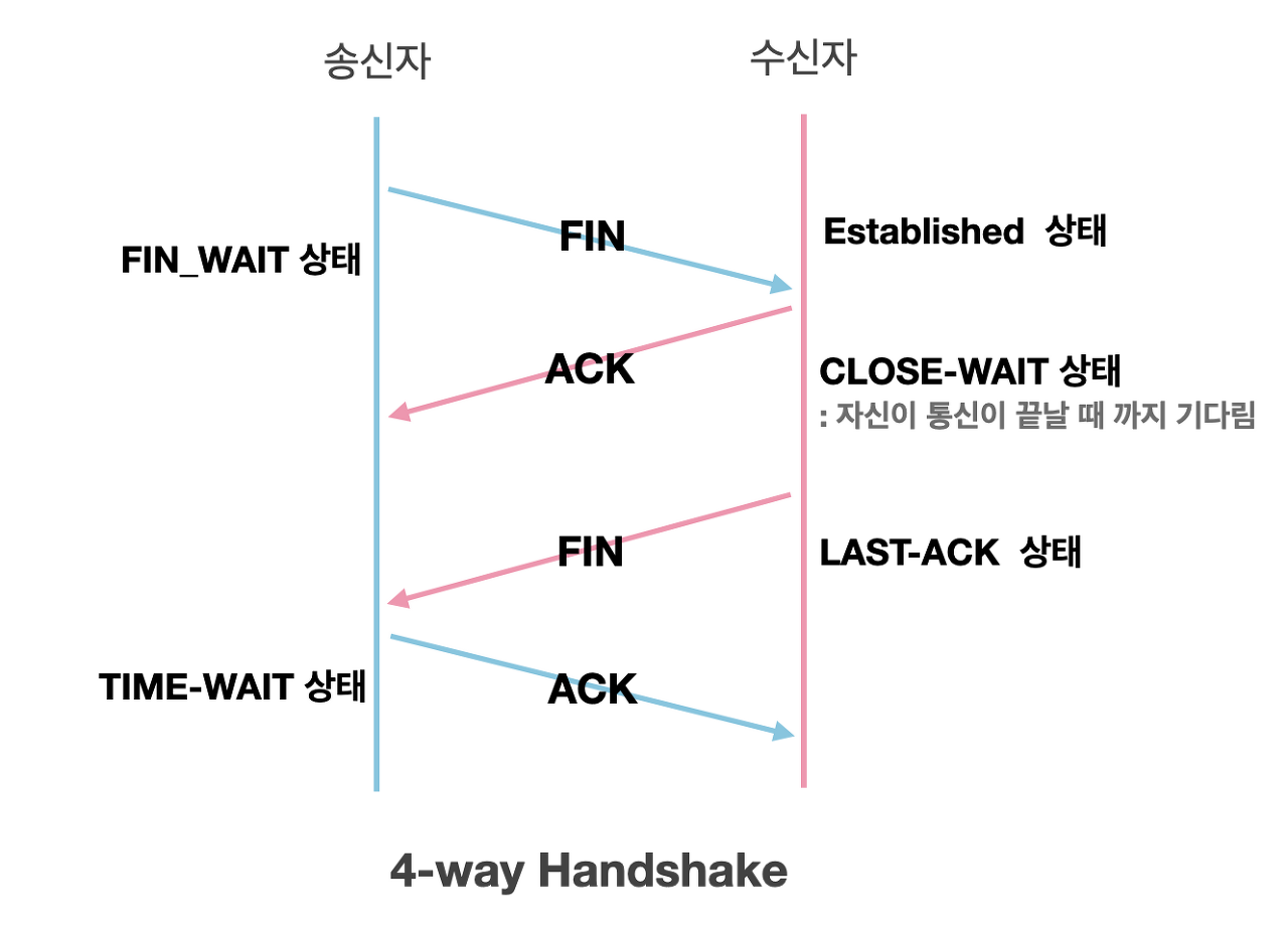 4 way handshake는 3 way handshake와 정반대로 3 way handshake는 통신을 시작할때 절차 였다면