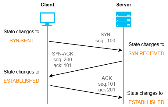 Server가 SYN과 ACK를 보내면 SYN_RECEIVED상태가 되고, Client가 ACK를 보내면,