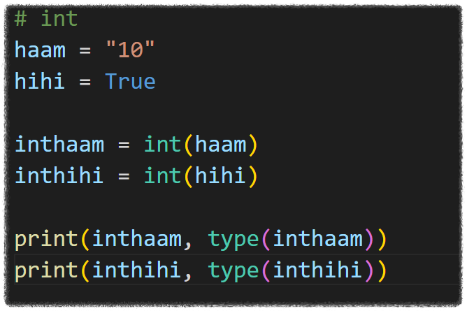 int는 다른자료형들을 정수(숫자) 형태로 바꾸는것 입니다.