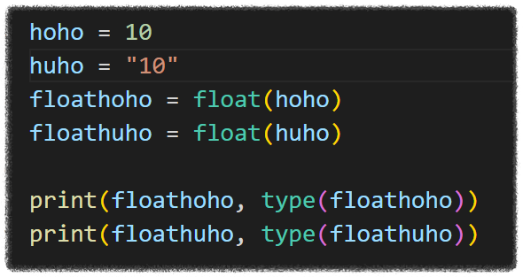만약 float(10) 이라면 결과는 10.0 이 됩니다. 그리고 float("10")도 결과는 10.0 이 나옵니다.