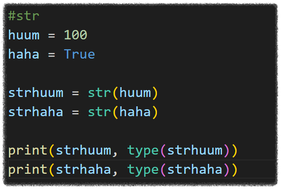 str는 다른 자료형들을 문자열 형태로 바꾸는것 입니다.
