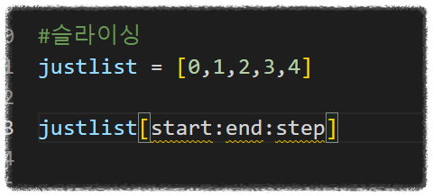 이런식으로 슬라이싱은 리스트, 딕셔너리, 튜플 같은데에서 범위를 결정하고,