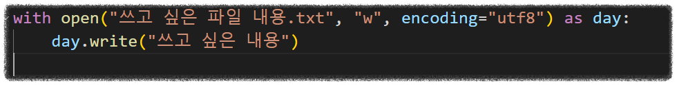 이 방법이 가장 기본적인 방법입니다. 우선 변수를 통해 파일을 열고(만들고) 쓰고 싶은 내용을 쓰고,